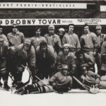 Stojící zleva: Petr Škvarček, Miloš Feber, Ryška (?), Josef Feber, Zdeněk Pazdera, Jan Jelen, Bronislav Bonczek, Josef Himlar.